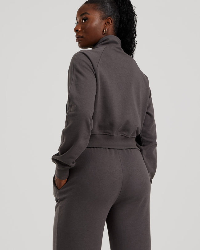 Comfort Light Full Zip Sweat | Graphite Das Model ist 179cm groß und trägt Größe S